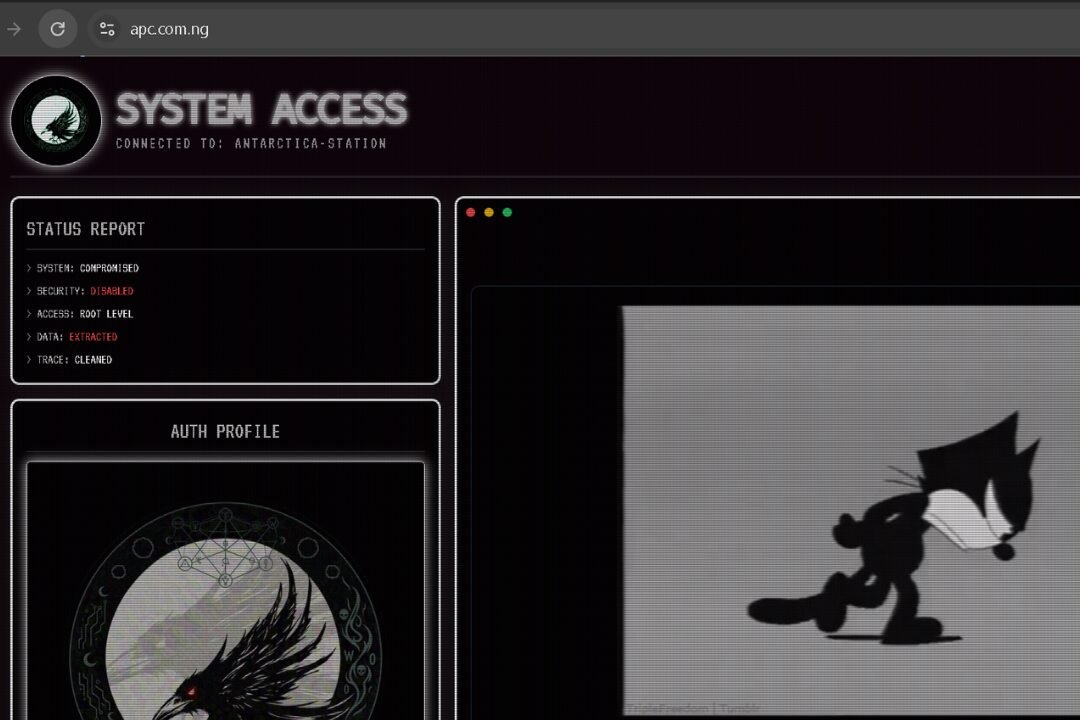 The official website of Nigeria’s ruling All Progressives Congress (APC), https://apc.com.ng , has been compromised and defaced, with visitors now encountering a hacker-themed interface in place of the party’s standard content.